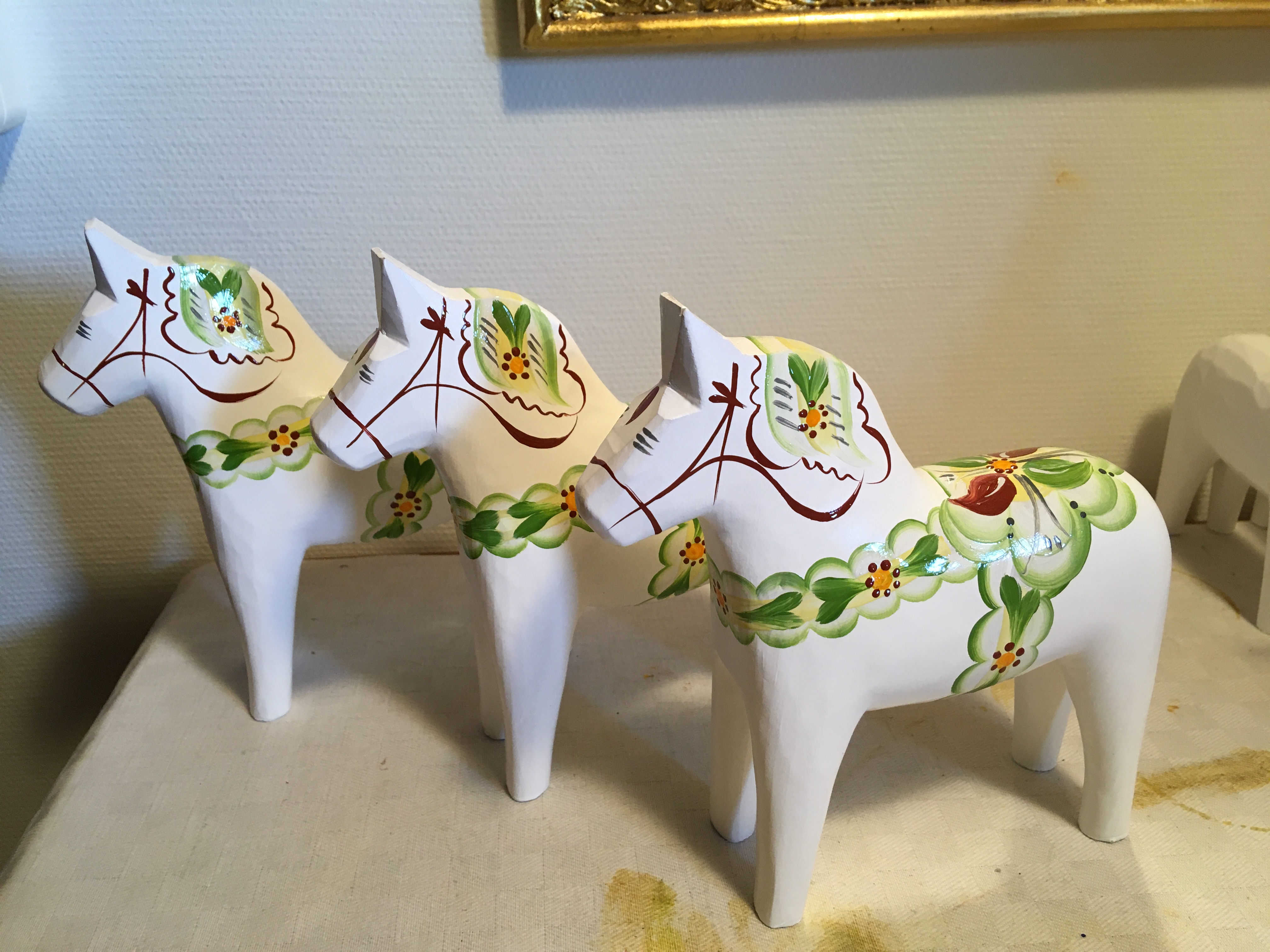 Den kanske mest kända dalahästtillverkaren hittar man i lilla byn Nusnäs, Nils Olssons Dalahästar. En Dalahäst har lång väg att vandra från skogens fura vidare till täljaren, dopparen och till krusmålerskan.... och en av dessa är jag! Som "hemmamålare" kan du se mig i min ateljé krusa de fina Dalahästarna innan de kommer tillbaka till sitt stall i Nusnäs eller kanske hem till dig!